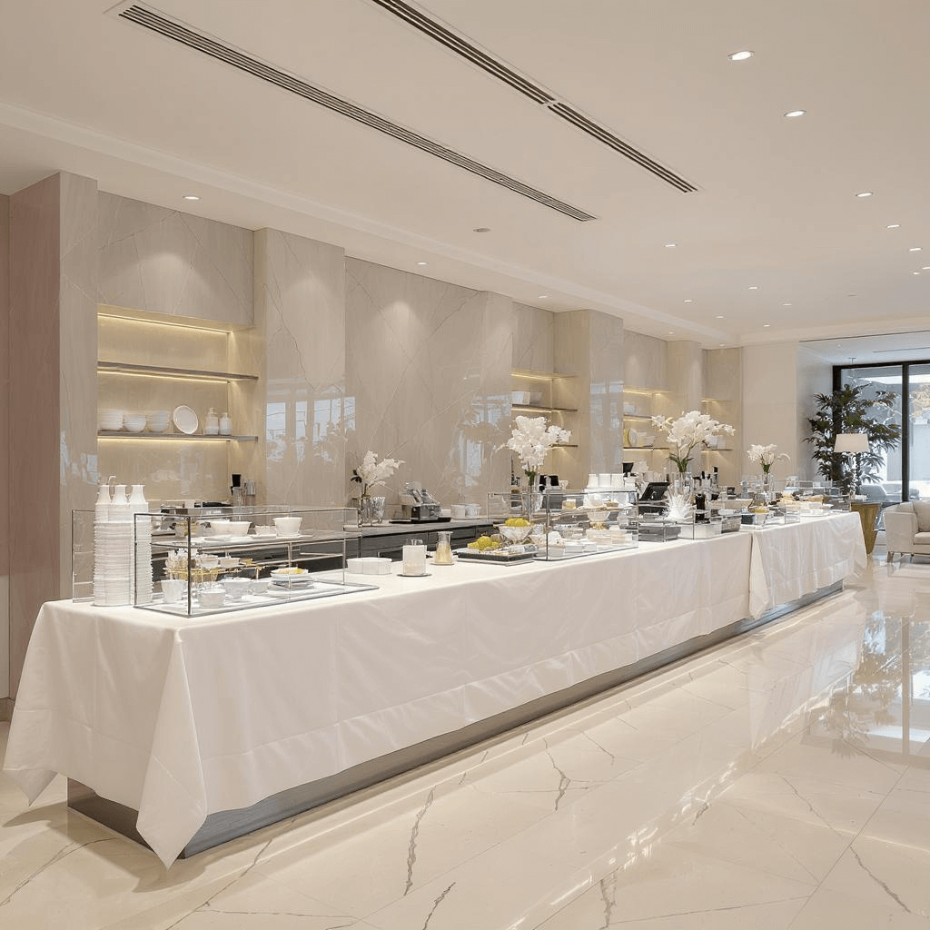 Yes! We offer one of the widest selections of linen colours and sizes in the region. We’ll help you choose options that align with your branding, space, and service style perfectly.